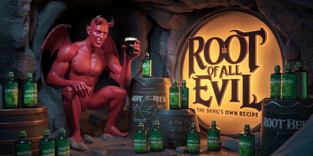 In the heart of the Devil's lair, amidst glowing embers and ancient tree roots that twist and turn like serpents, the Devil concocted The Root of All Evil root beer with a sly grin. He sought a potion so irresistible, so bewitching, that it would charm the souls of even the most virtuous. His creation, intended to ensnare the senses, became the essential ingredient in the infamous Root of All Evil Cocktail.